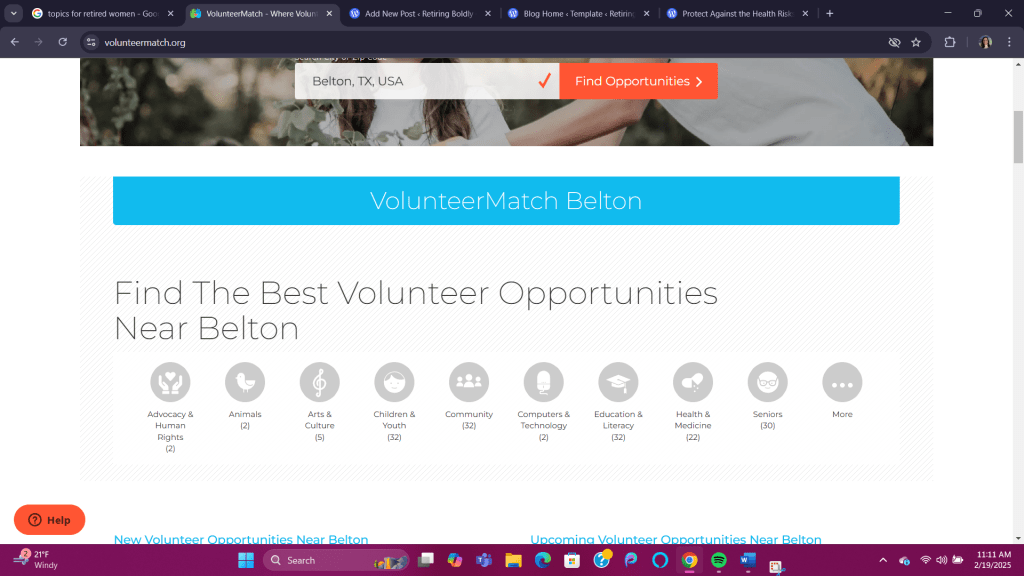 If you go to volunteermatch.org, you can enter your city and state and it will match you to opportunities where you can plug in. You can select your areas of interest and even pick in person or virtual.